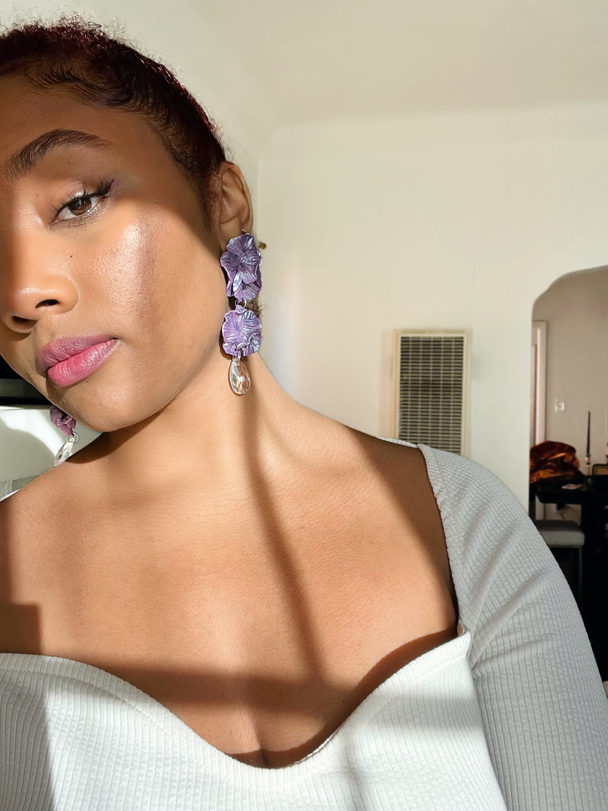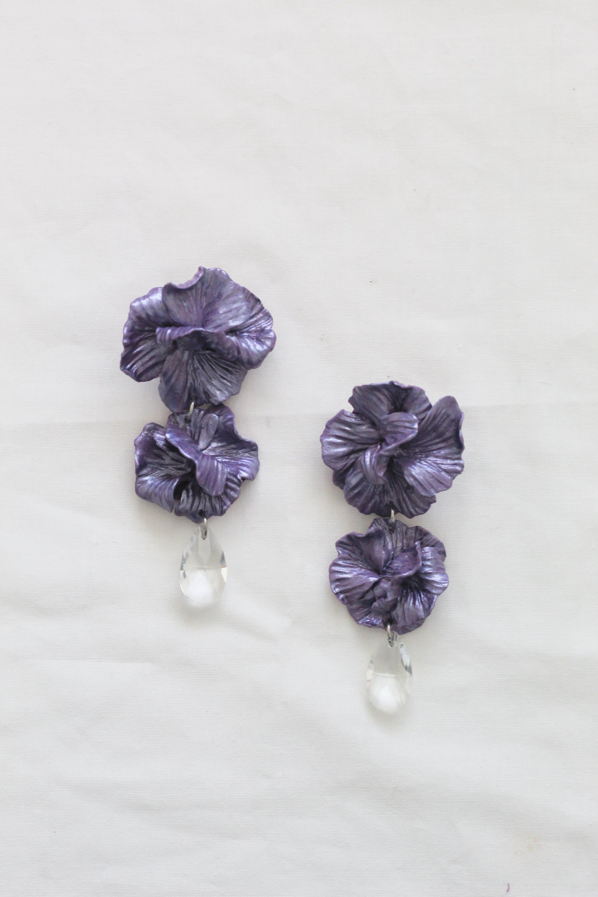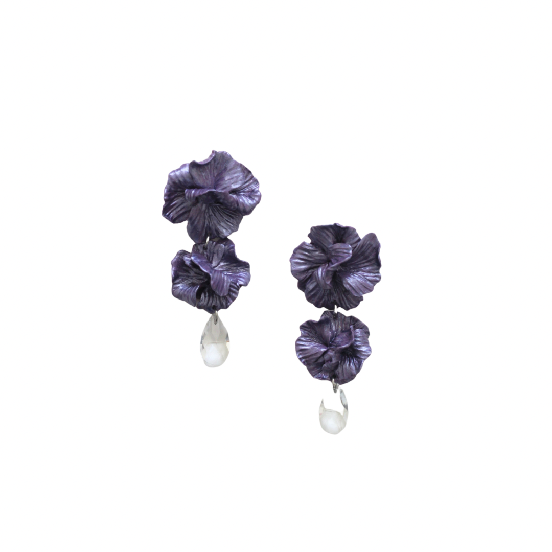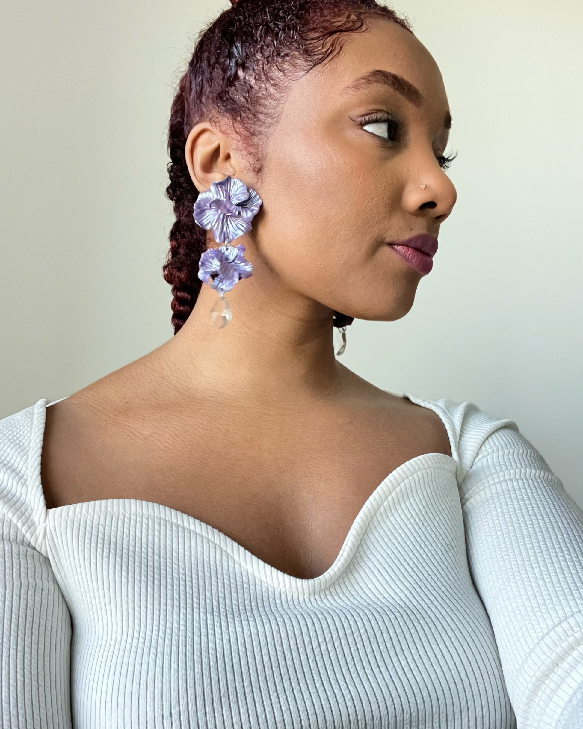OPHELIA is our first earring line of 2023! These earrings are feminine, timeless, and elegant! They’re like an antique heirloom you’d find in your grandmother’s jewelry box! Each petal is pieced together to assemble the blooming flower which is finished with a pearly topcoat. Lastly, a clear crystal drop is added for the final touch of elegance!