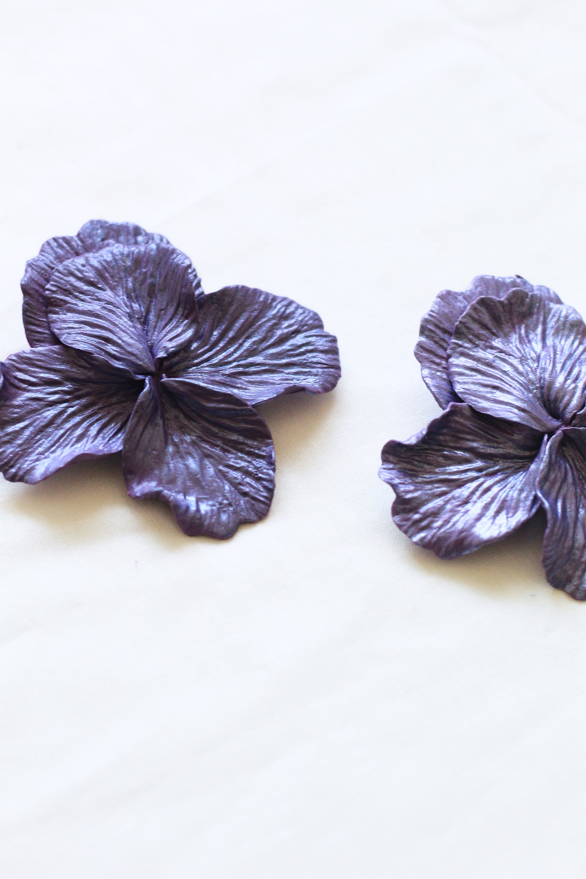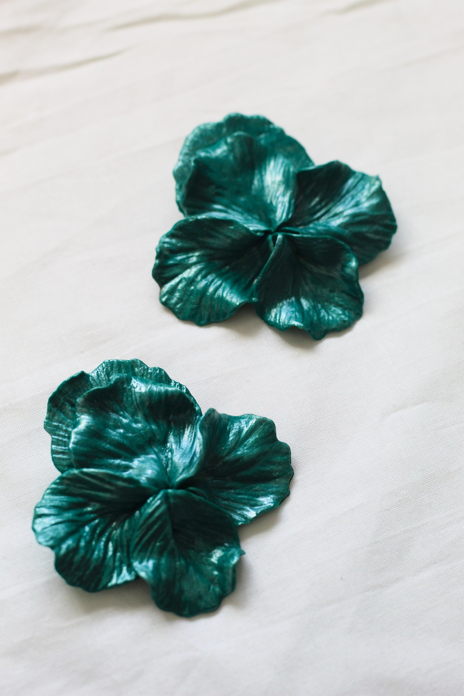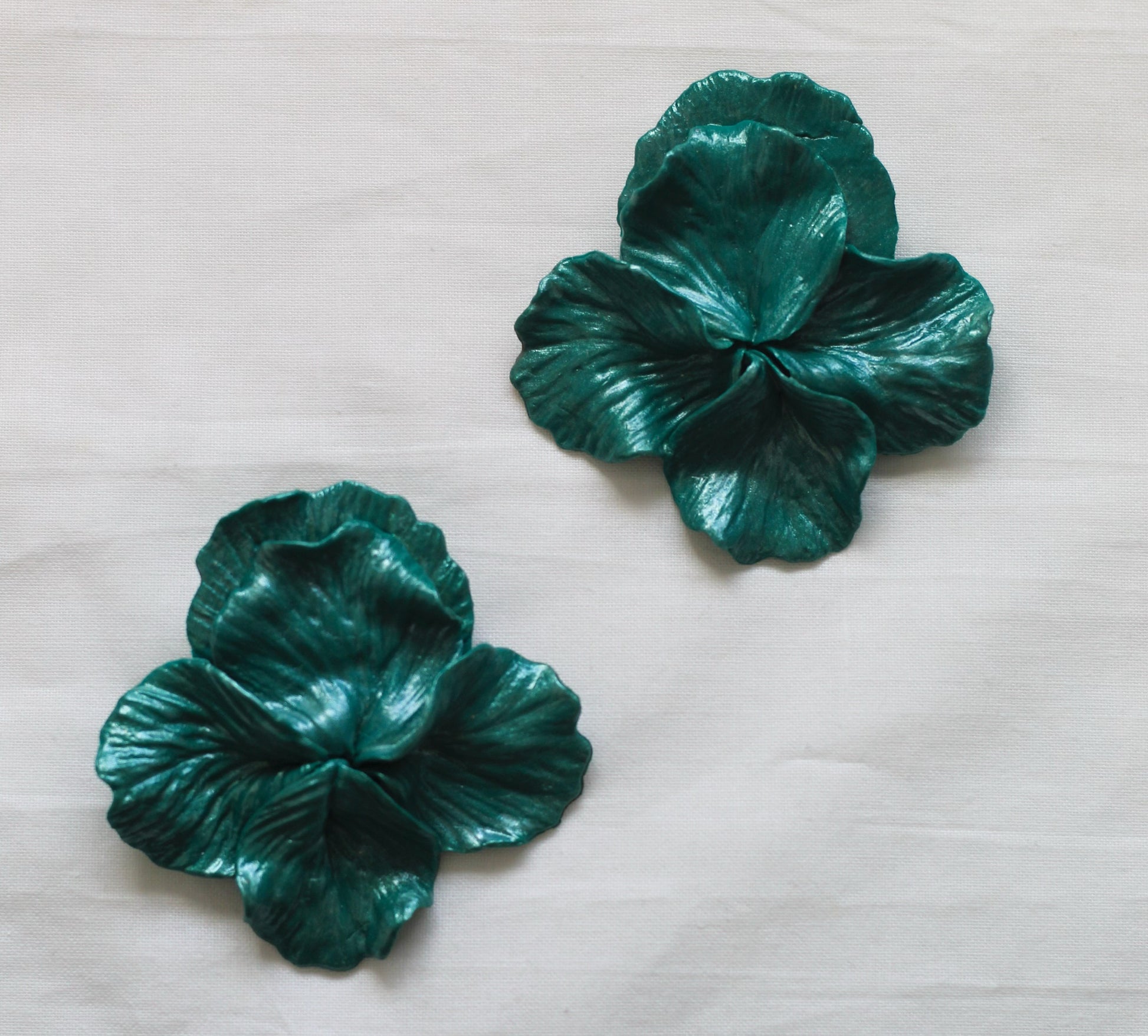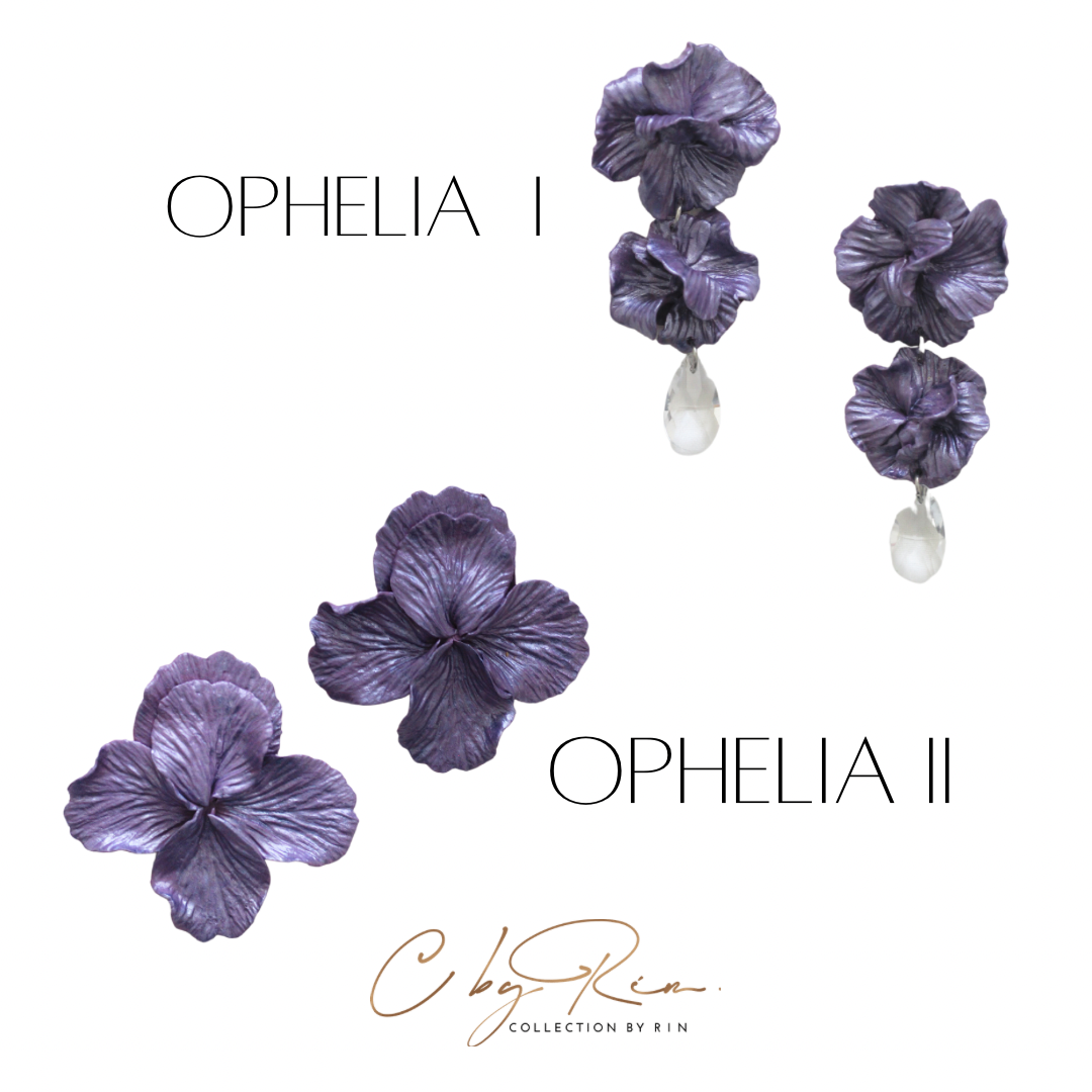 OPHELIA is our first earring line of 2023! These earrings are feminine, timeless, and elegant! They’re like an antique heirloom you’d find in your grandmother’s jewelry box! Each petal is pieced together to assemble the blooming flower which is finished with a pearly topcoat.