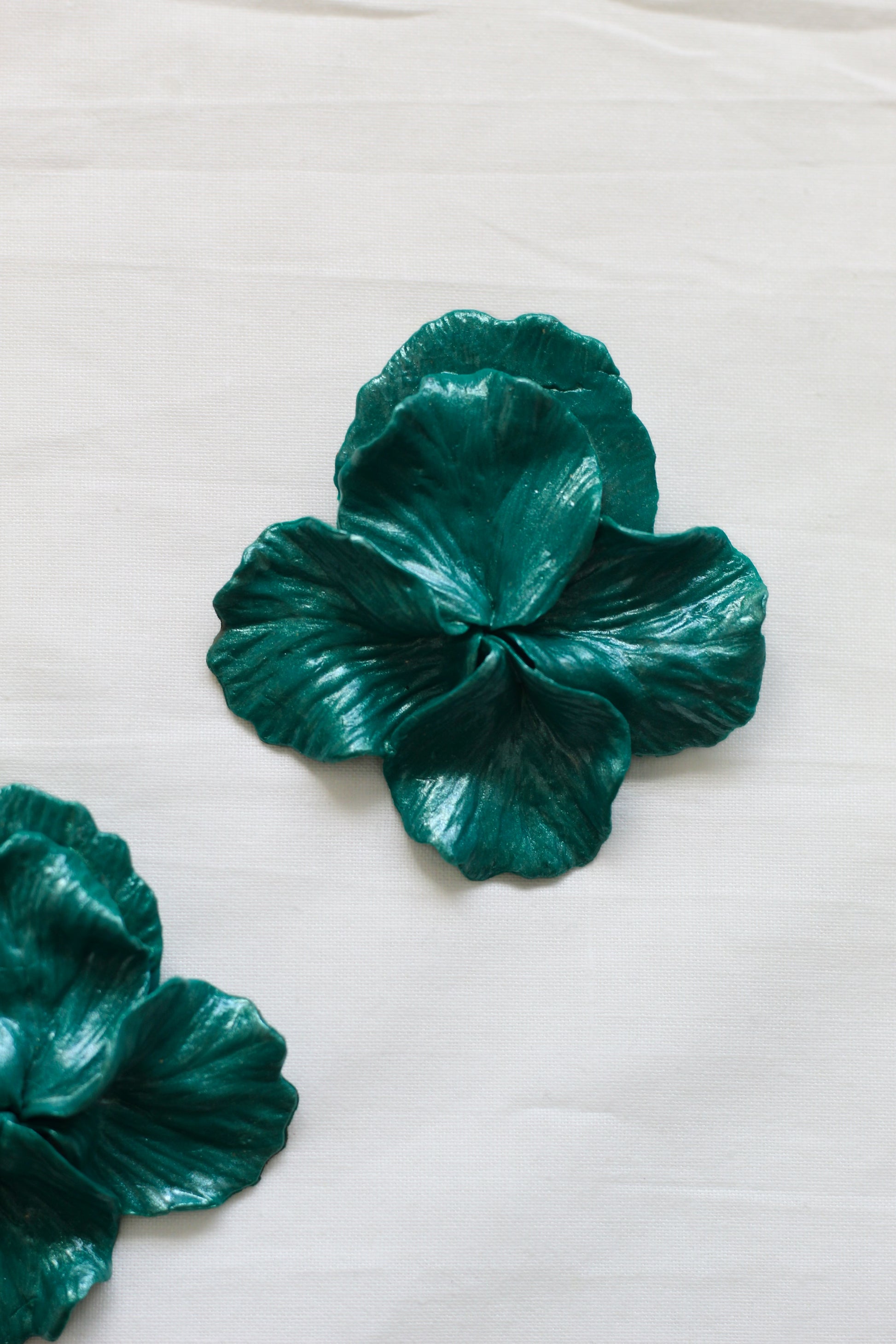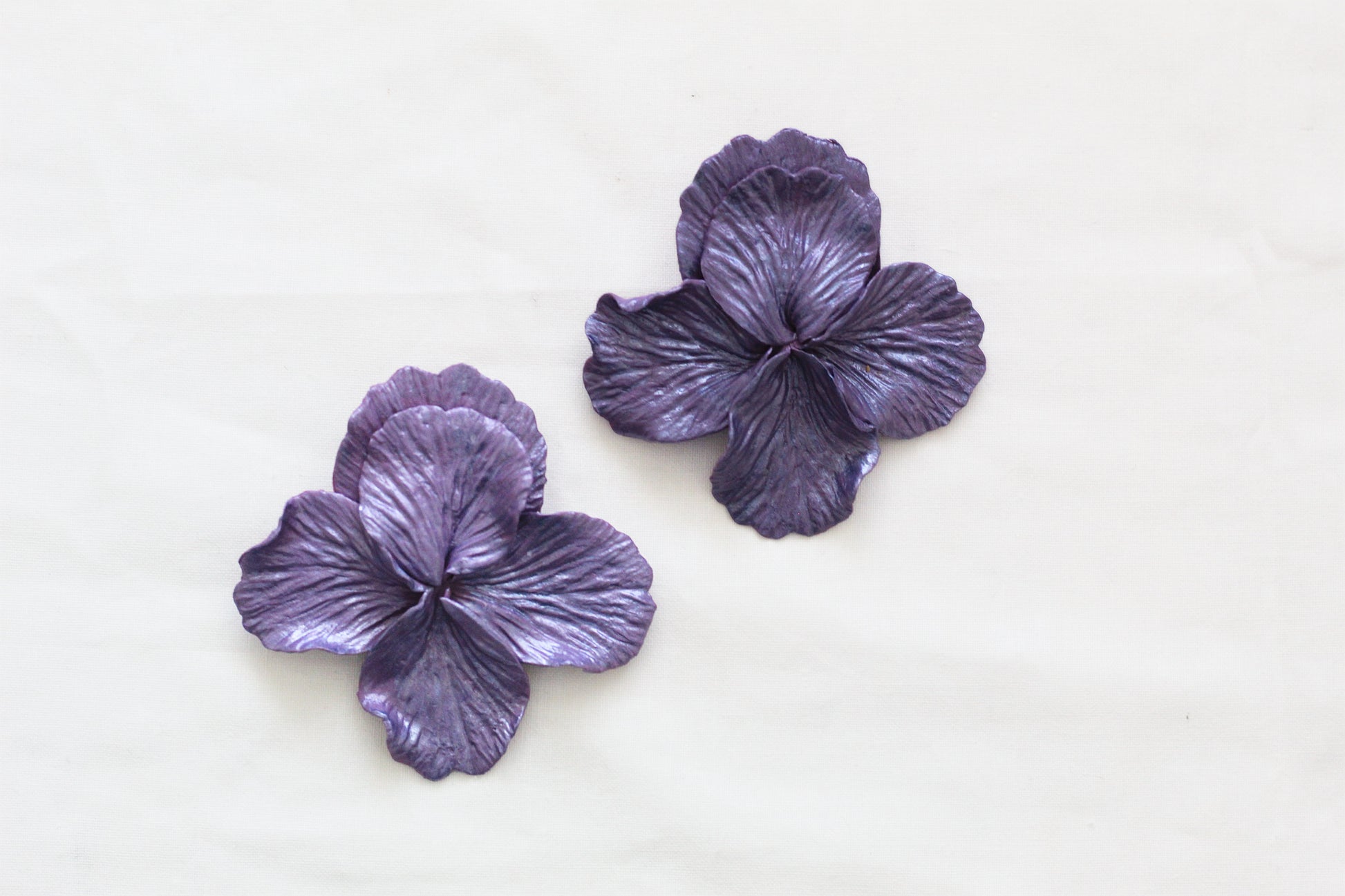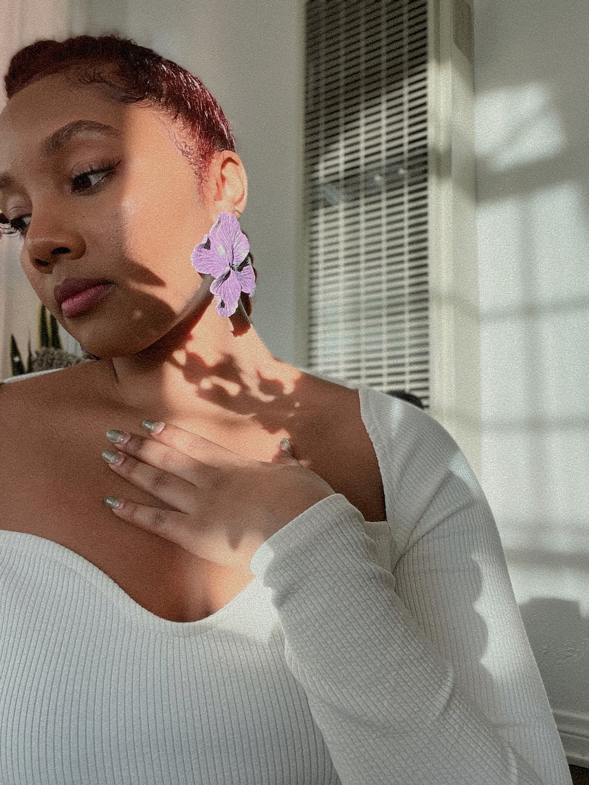 OPHELIA is our first earring line of 2023! These earrings are feminine, timeless, and elegant! They’re like an antique heirloom you’d find in your grandmother’s jewelry box! Each petal is pieced together to assemble the blooming flower which is finished with a pearly topcoat.