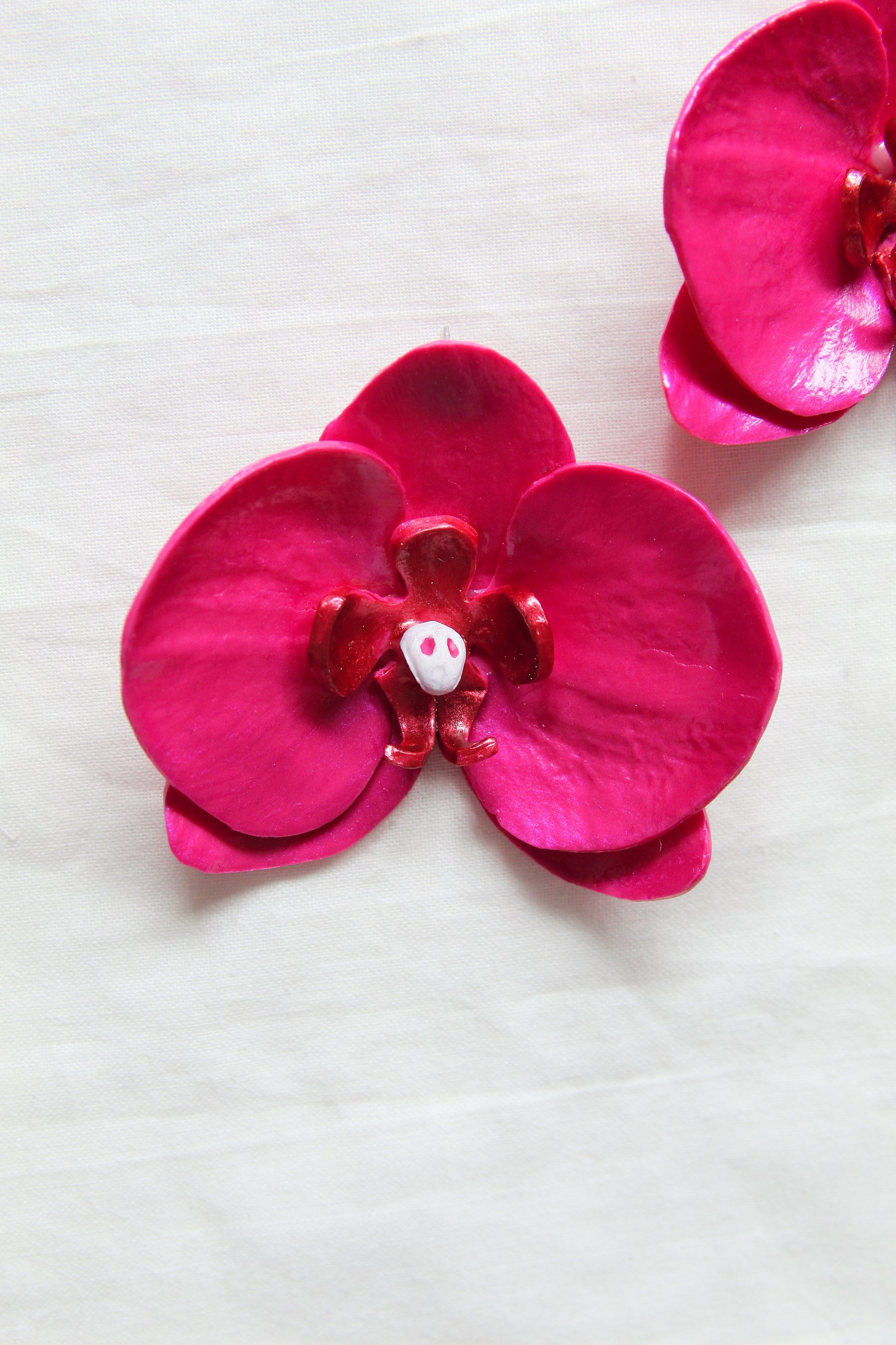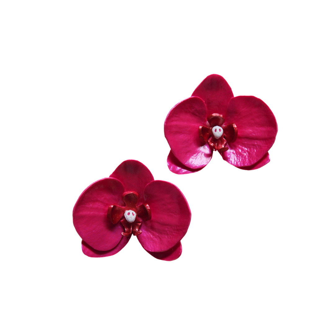 Intricately designed to replicate the beauty of a real orchid, these hot Pink Orchid earrings are both lightweight and true to size. Crafted with surgical stainless steel earring posts and handmade with polymer clay, each pair may vary slightly. Our dedication to individuality and precision means each earring is made specifically for you. Please handle and store with care, avoiding any potential damage from dropping or placing heavy items on top.
