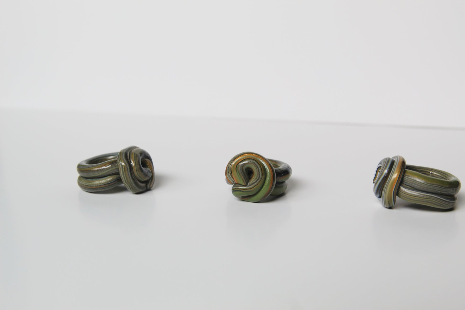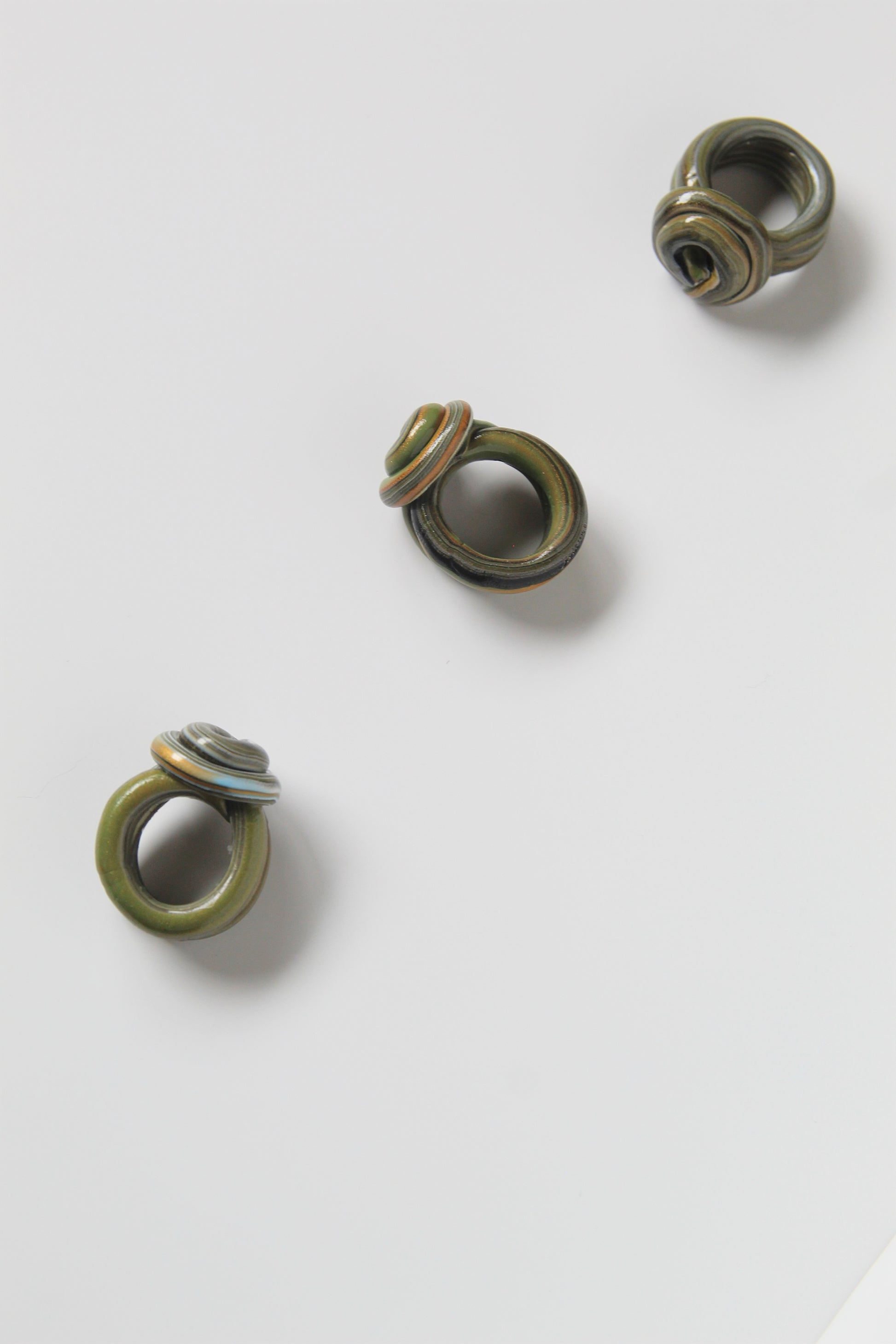 This Chameleon Ring - handmade using clay - features a multi-colored design, reminiscent of a chameleon. Its unique swirls of color blend together to create the perfect accessory to spruce up any outfit.